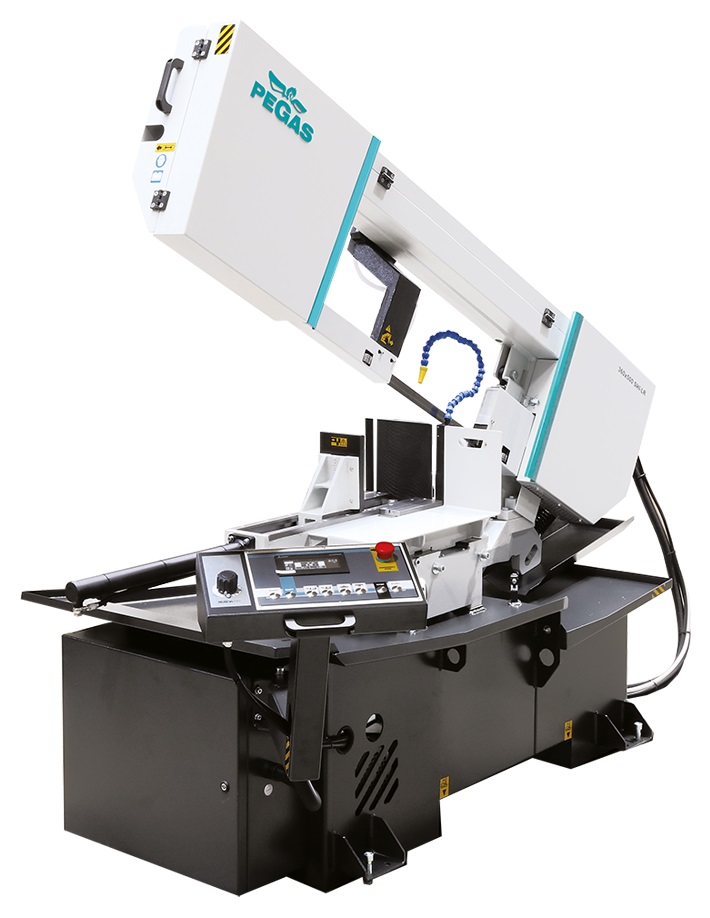 Рабочий цикл станка: После установки заготовки в тиски и установки рамы в верхнее положение оператор нажимает кнопку старта цикла, после этого станок сам производит зажим заготовки в тисках, приводит в движение ленточное полотно, подает СОЖ, и начинает опускать вниз пильную раму. Скорость опускания пильной рамы регулируется с пульта управления станка, при этом станок автоматически контролирует усилие подачи по нагрузке на двигатель. После того, как станок выполнил рез, консоль поднимается в верхнее положение, после чего прекращается вращение ленточного полотна и выключается подача СОЖ и тиски раскрываются. После чего рабочий производит манипуляции с материалом.